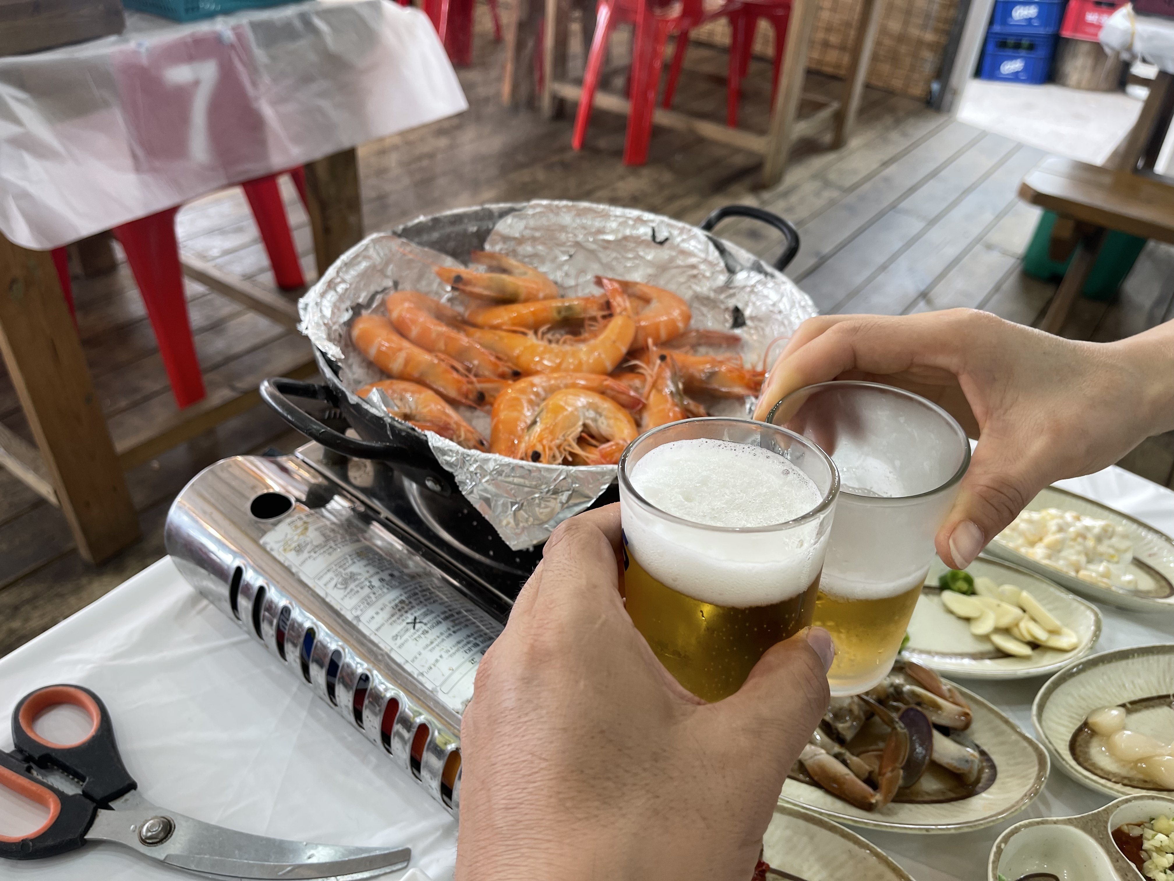 출발은 안면도 초입의 백사장해수욕장 옆 백사장수산물시장 주차장에서 했습니다.
