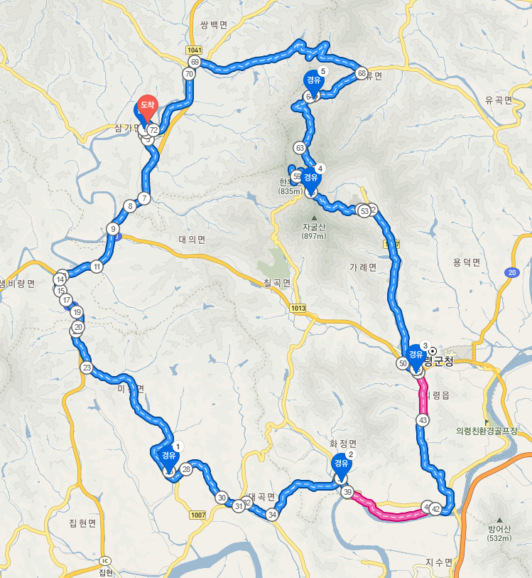 합천 삼가면 한우촌에서 출발하여 의령과 자굴산-한우산을 넘은 다음에 맛있는 한우를 먹을 예정입니다.