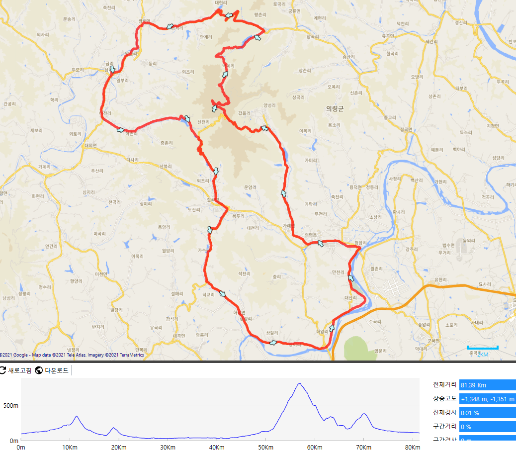거리 83km 획고 약 1,500m 정도 나오는데 전체적인 코스는 참 좋았습니다.