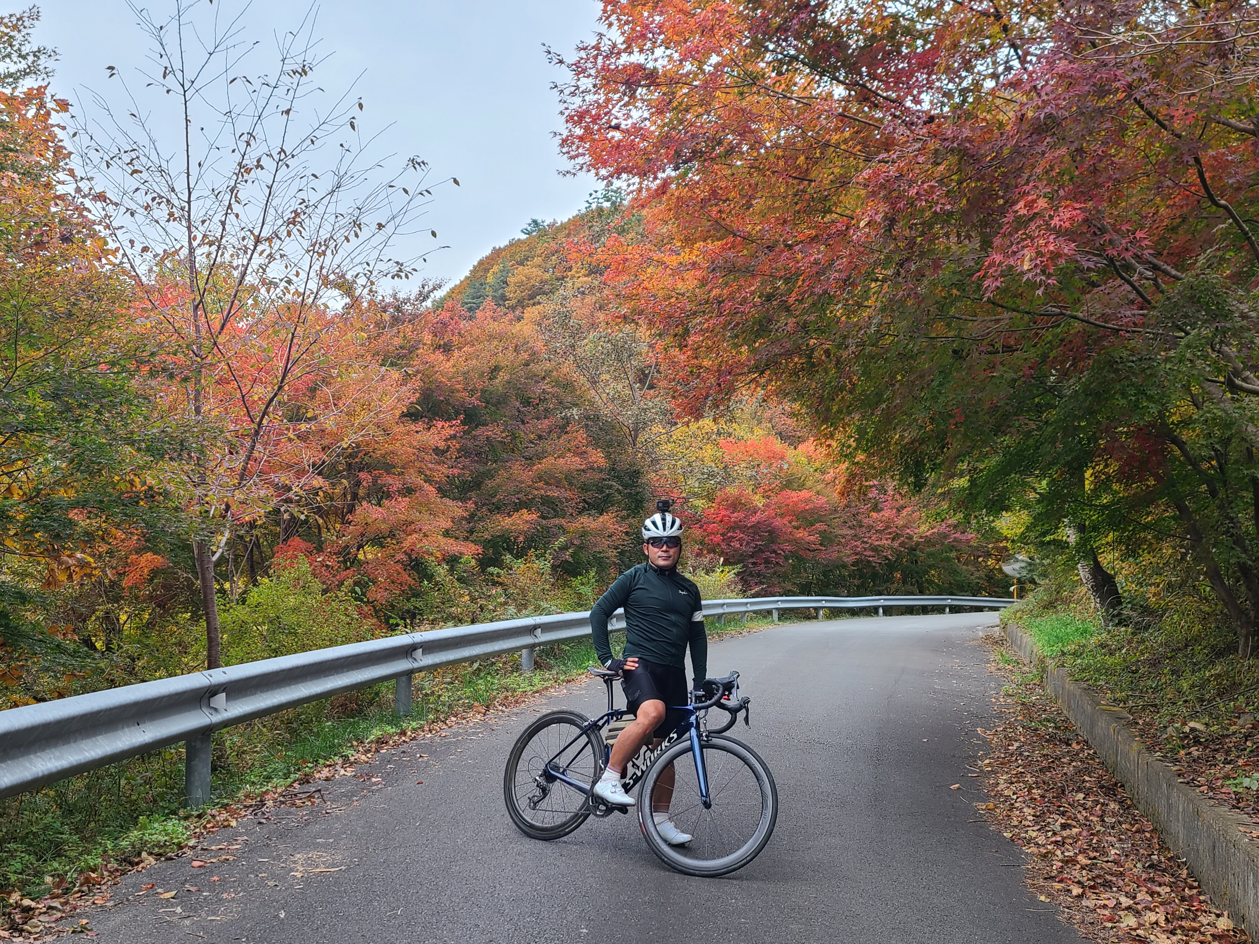 가장 문제는 한우산 다운힐의 도로상태와 경사도였습니다. 시멘트 포장 상태가 좋지 않았고 경사도도 높아 긴장하며 내려와야했습니다.