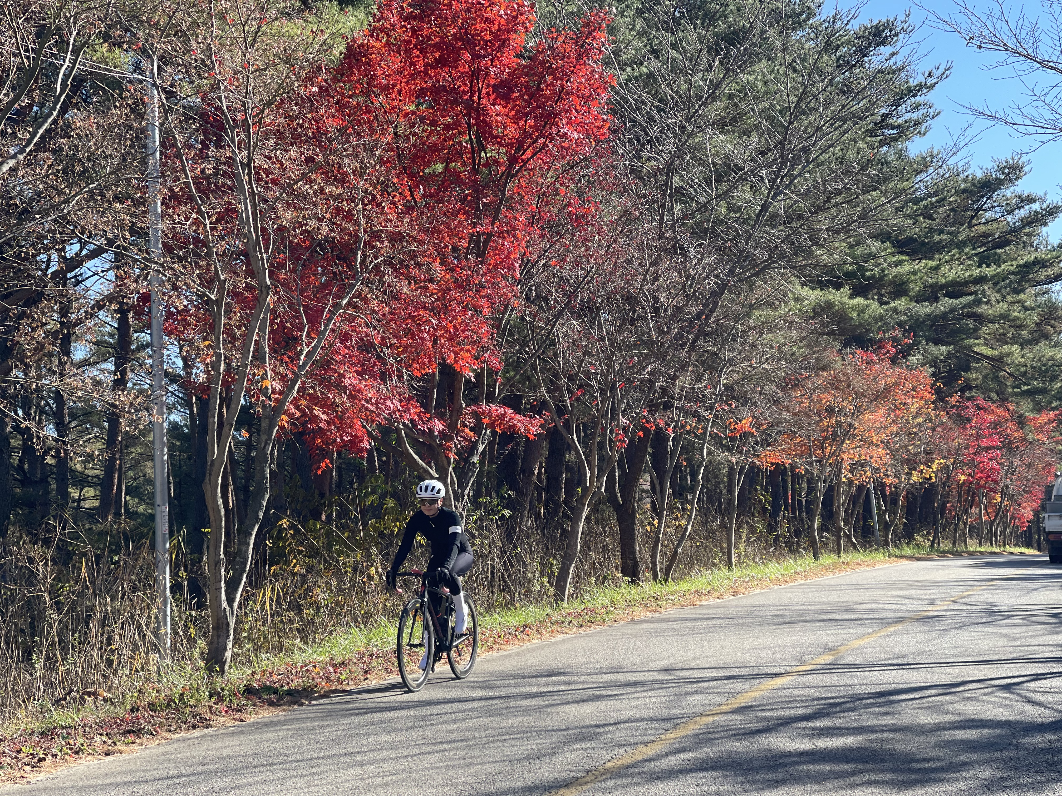 기대했던 사과가 주렁주렁 달린 사과밭 라이딩길엔 추수가 끝난 사과나무만 남아있었고 예쁜 단풍나무도 잎이 많이 떨어져 아쉬웠습니다.