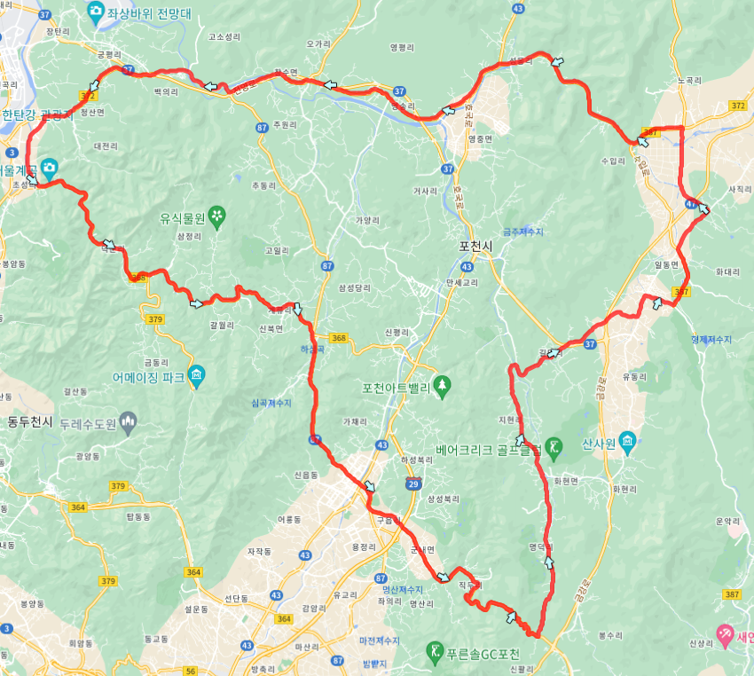 포천시 반월아트홀에서 출발하는 3번째 코스입니다.