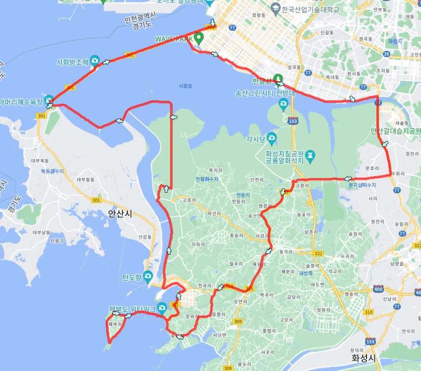 시화호 한바퀴 돌면서 제부도를 다녀오는 코스입니다.