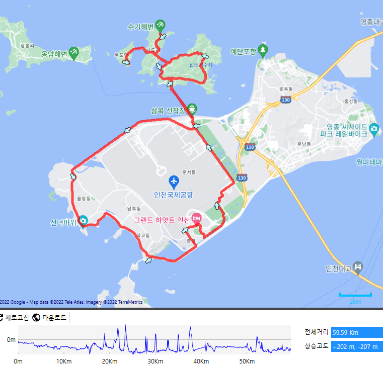 영종도-2 코스는 거잠포 포구 옆 주차장에서 출발하여 영종해안남로를 잠시 달리다 공항쪽으로 들어가 자전거길을 이용해서 삼목항으로 갔습니다.