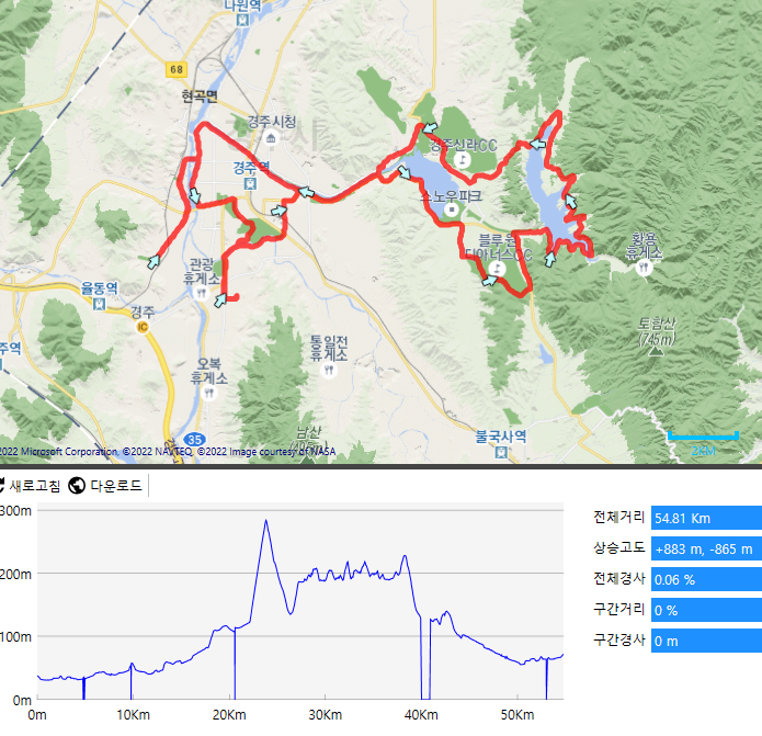 당초 코스는 라이딩 거리를 늘릴 생각으로 불국사를 넣었는데 관광차량도 많고 시간을 지체 할수록 차량이 많아질거 같아 불국사쪽은 빼고 경주 시내와 보문호 위주로 코스를 잡았습니다.