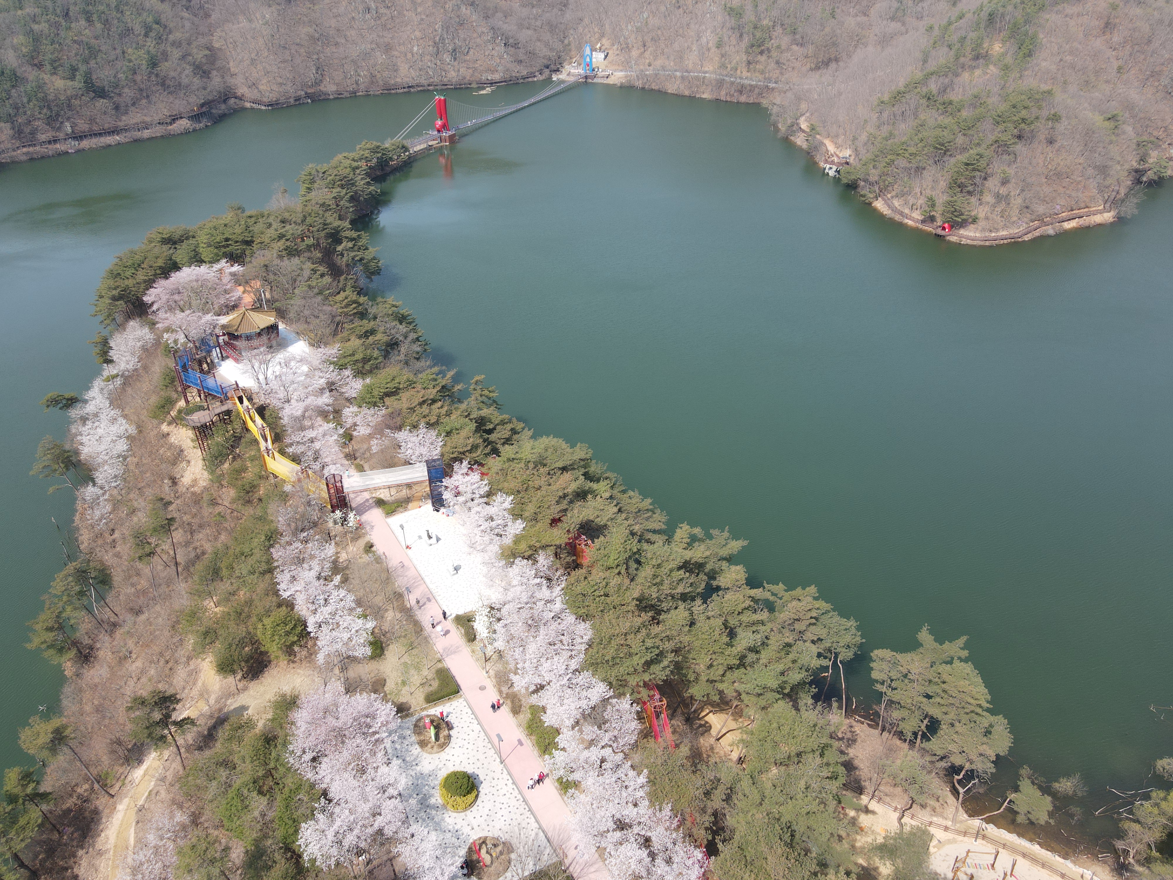 코스중에는 출렁다리가 멋진 천장호를 지나고 칠갑산과 칠갑저수지를 지나고 벚꽃으로 알려진 장곡사 앞 벚꽃길도 달립니다.