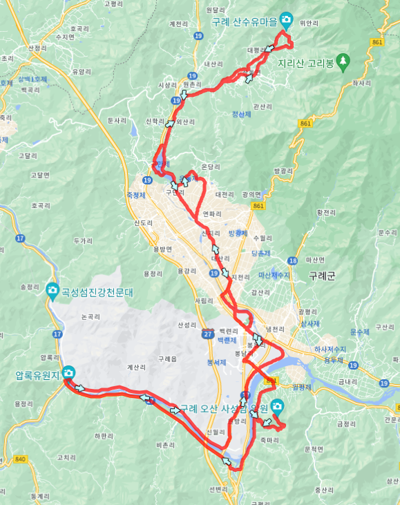위 코스파일은 섬진강변을 돌아서 오는 조금 긴 코스파일입니다.