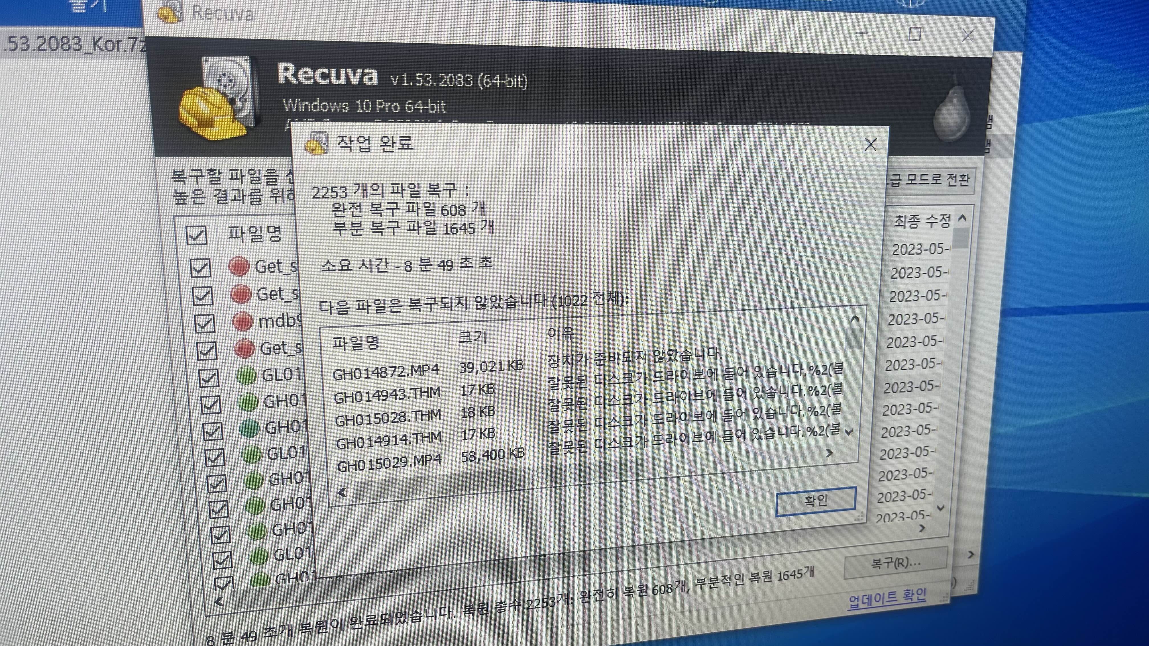 실수2. 복구프로그램을 돌려야겠다는 생각으로 찾아보다가 무료라는 말에 눈이 멀어 알수없는 무료프로그램을 돌렸더니 영상을 10개 내외만 복구됐습니다.
