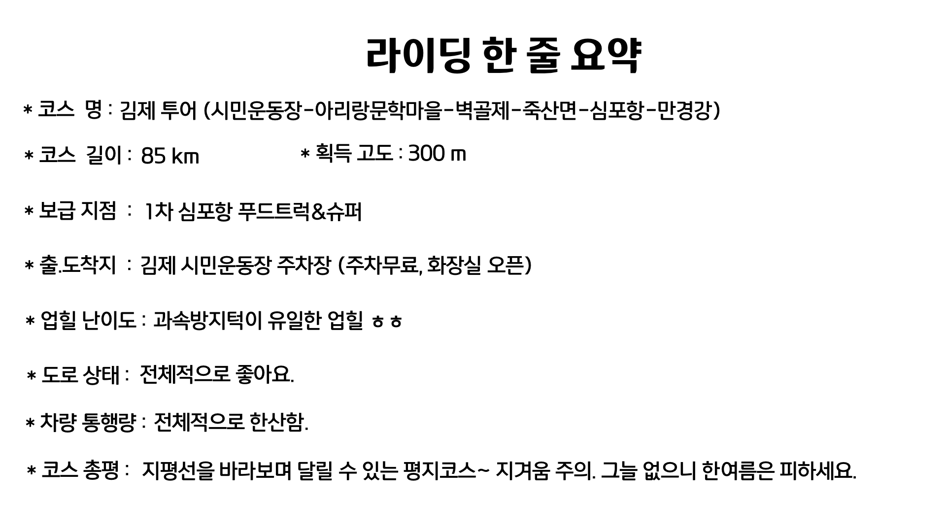 오늘은 김제평야를 달리는 지평선 라이딩으로 총 85km 회고 300m 이하의 코스입니다.