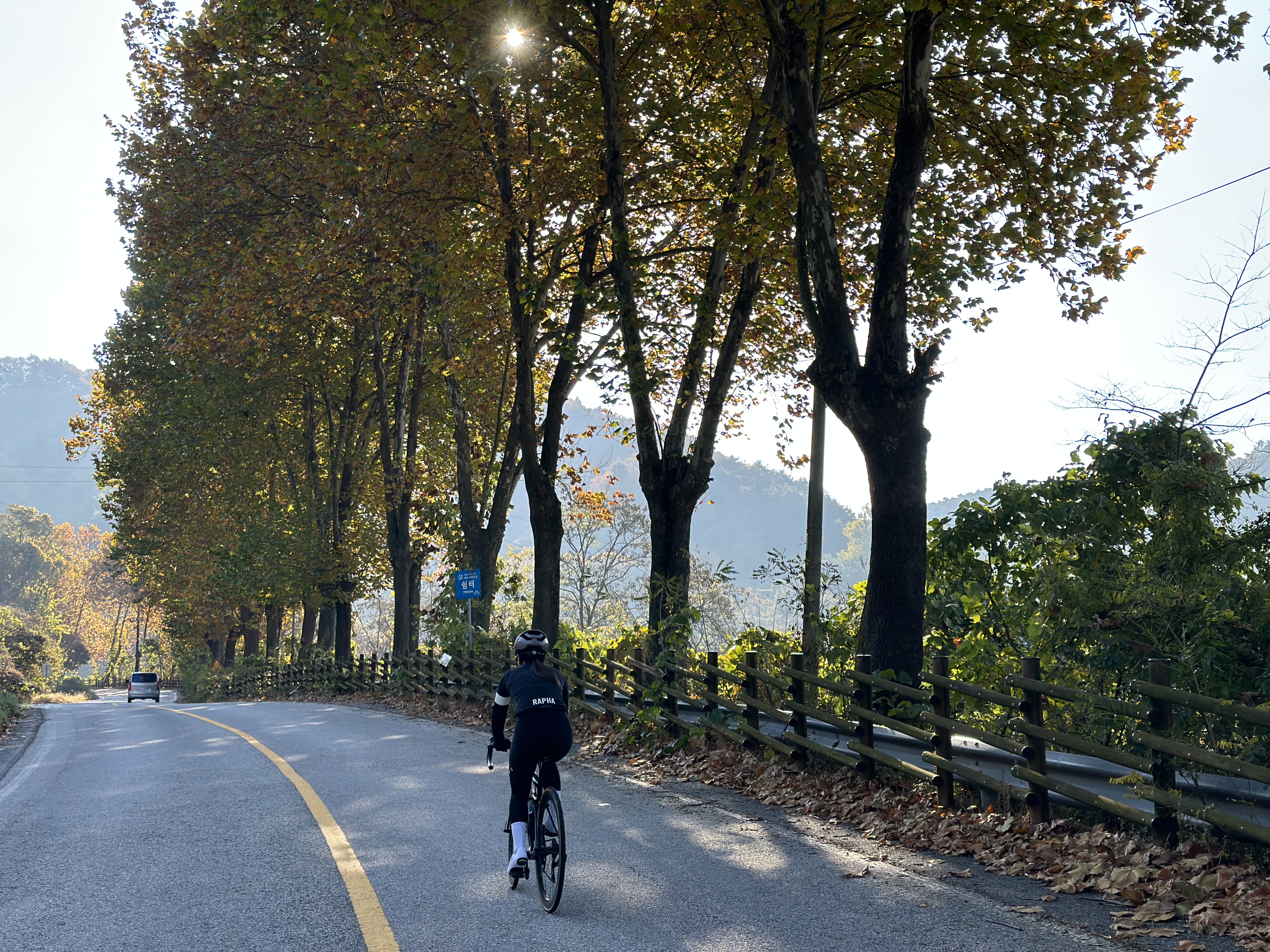 소조령을 넘을때는 평소 다니던 자전거길이 아닌 수옥폭포 있는 쪽으로 돌아서 내려갔는데 늦은 단풍이 예뻐서 참 좋았습니다.