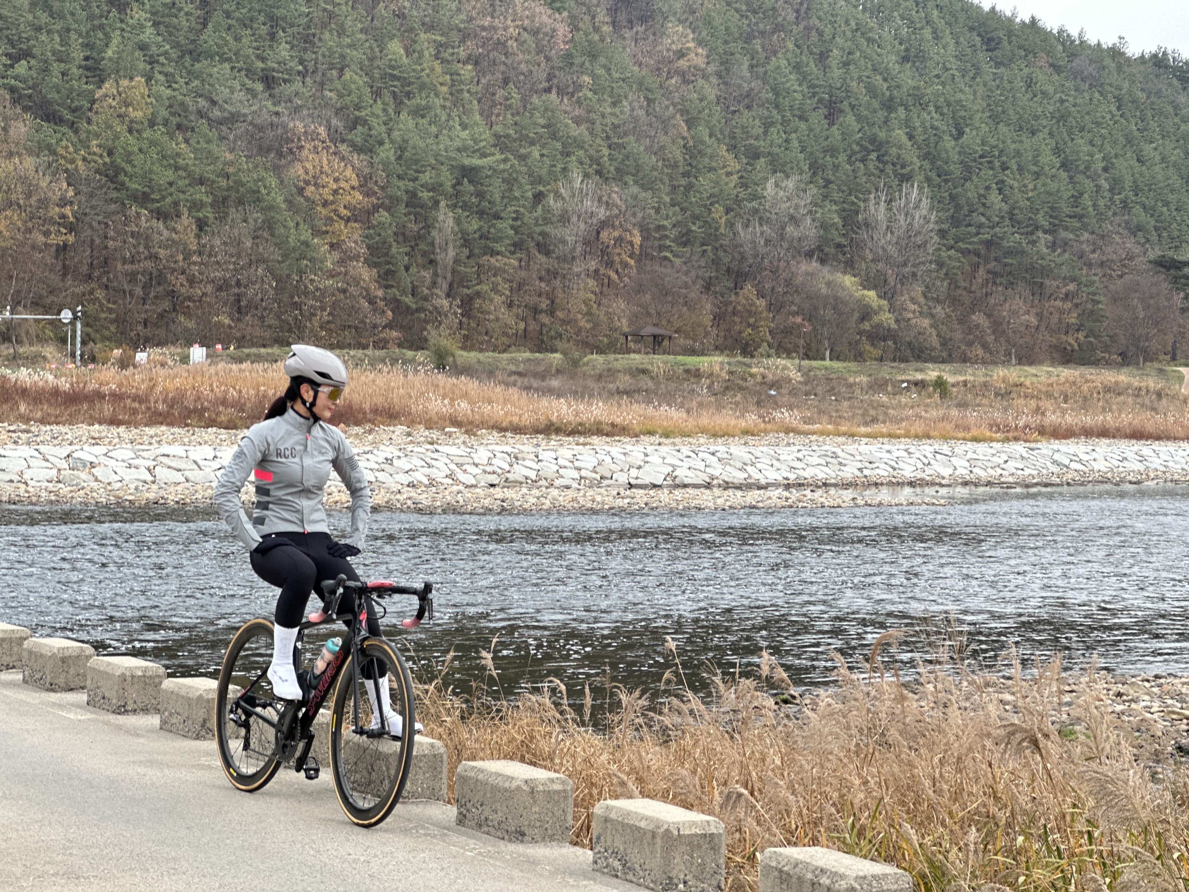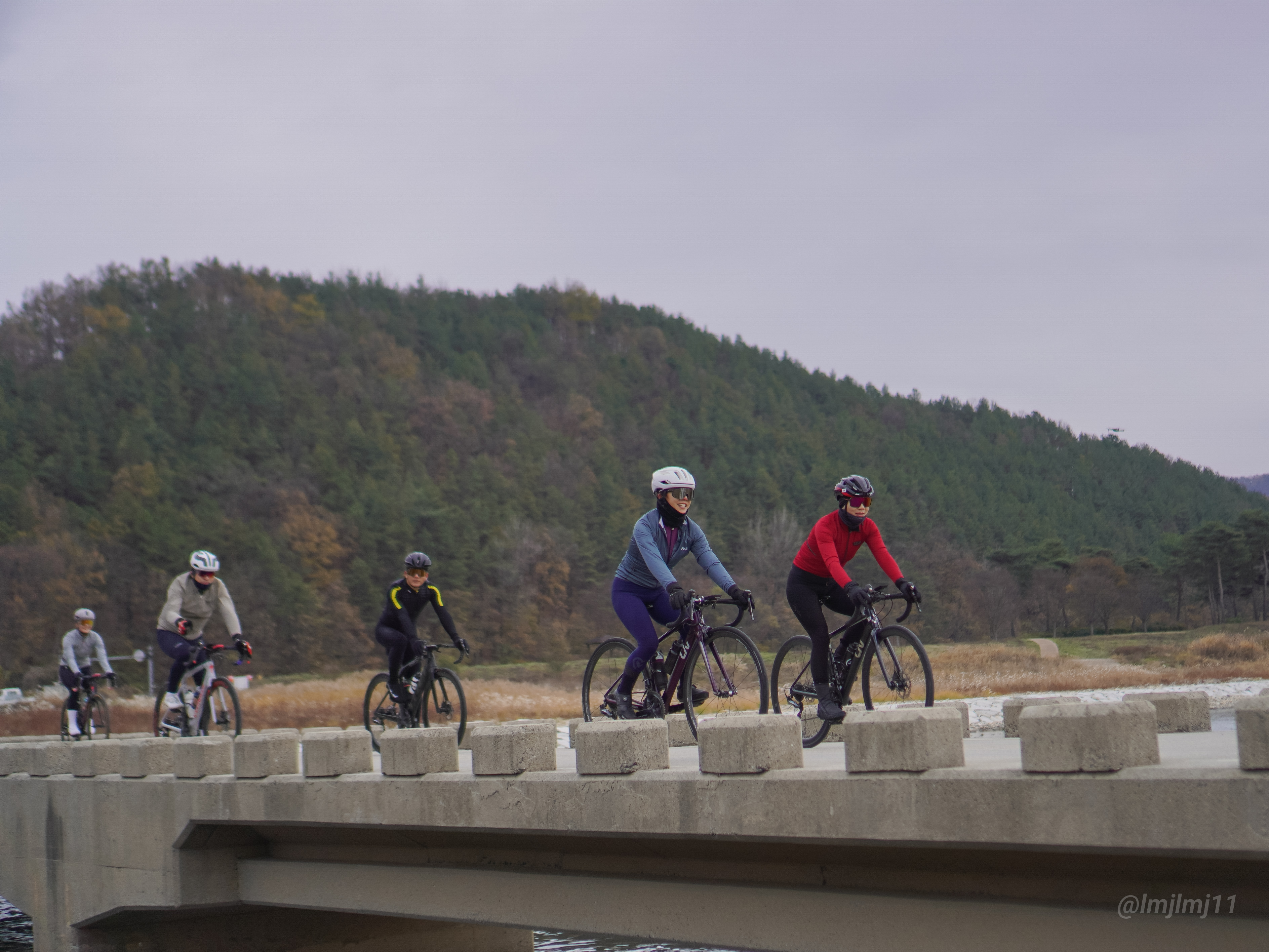 무주에서 영동 송호관광지 가는 길은 한적한 도로에 작은 업다운이 있어 재미있게 달릴 수 있고 송호관광지부터 월명산 출렁다리까지는 풍경 멋진 금강변을 따라 달리는 길입니다.