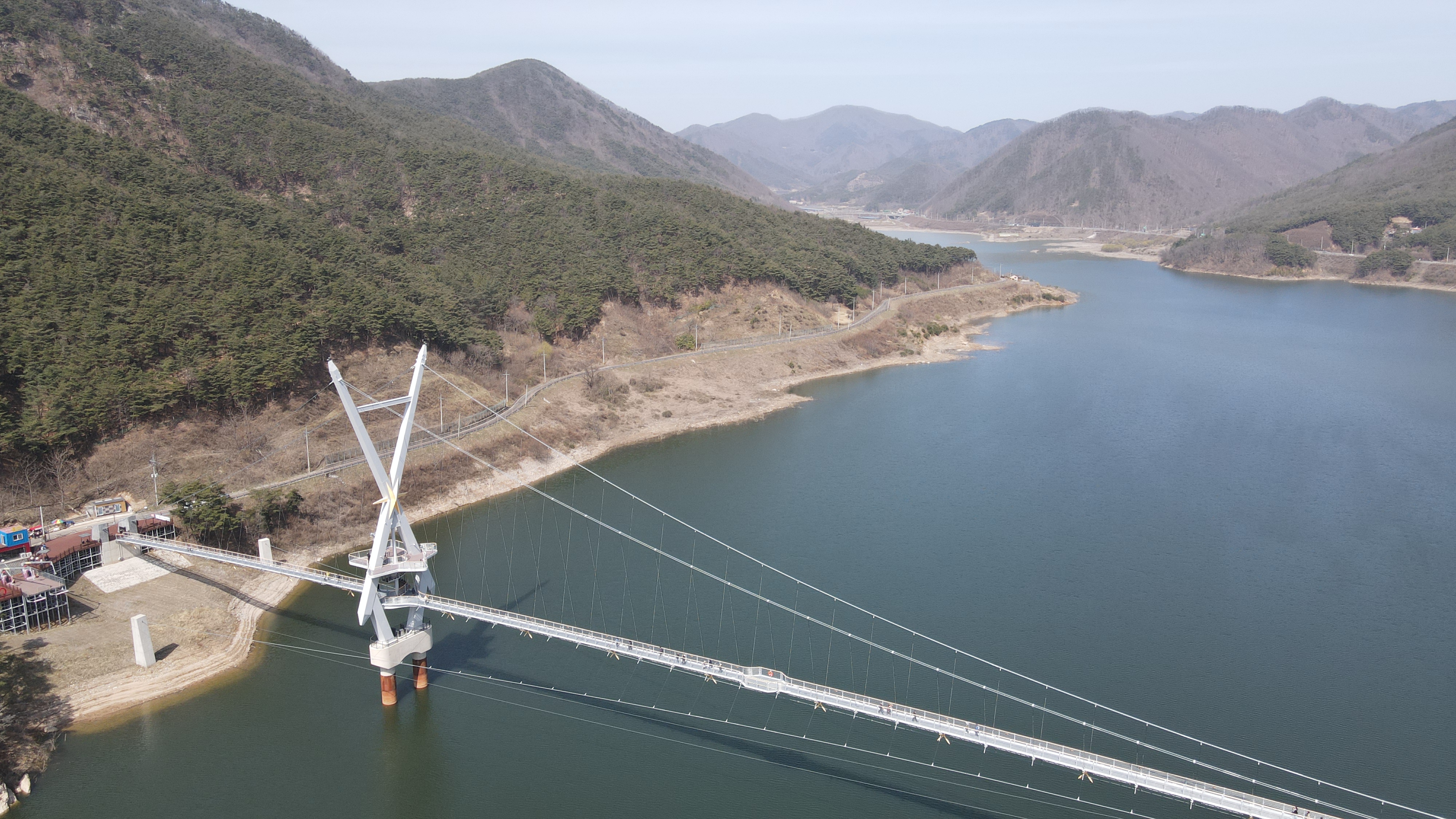 보현산댐에 올라 새로 생긴 출렁다리 구경을 하고 호수를 한바퀴 돌고 복귀길은 보현산자연휴양림 앞으로 업힐하여 왔던 벚꽃길을 되돌아 영천호로 달립니다.