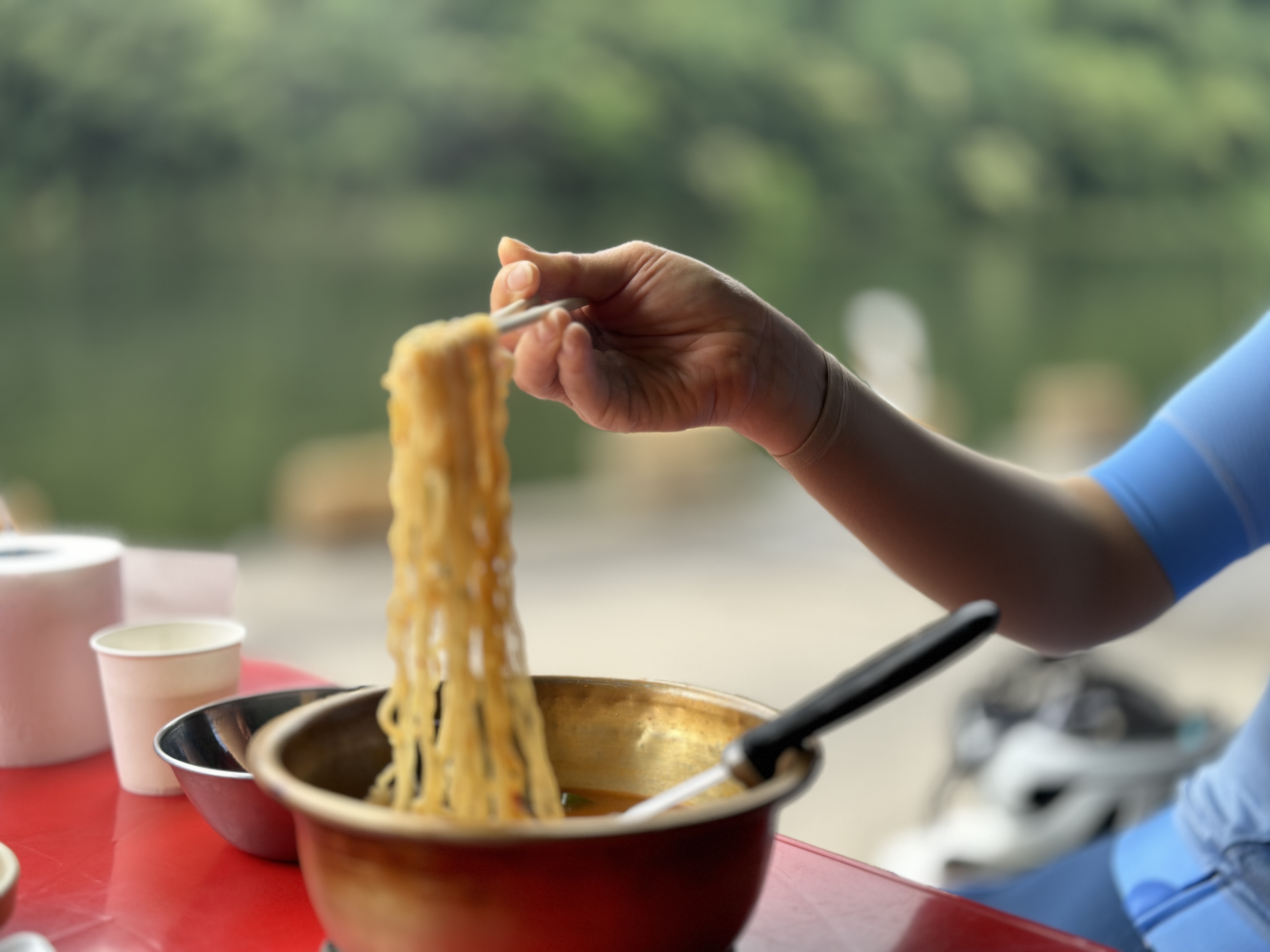 감자전 올갱이국 라면등을 시켜 아침겸 해서 먹었는데 주변 풍광이 멋져서 그런지 더 맛있었습니다.