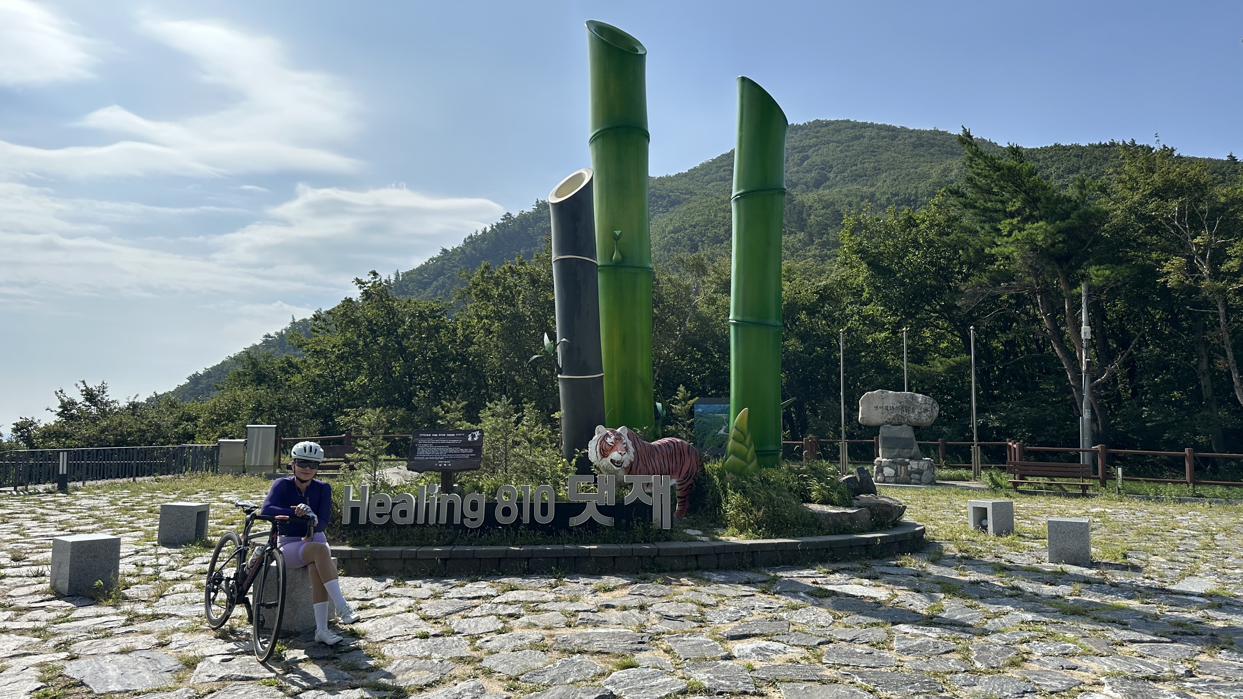 댓재 정상 공원에서 인증샷을 찍고 어르신 부부가 운영하는 카페에 들러 달달이로 보급 겸 휴식을 취하고 약 다운힐 길을 달려 광동호로 갑니다.
