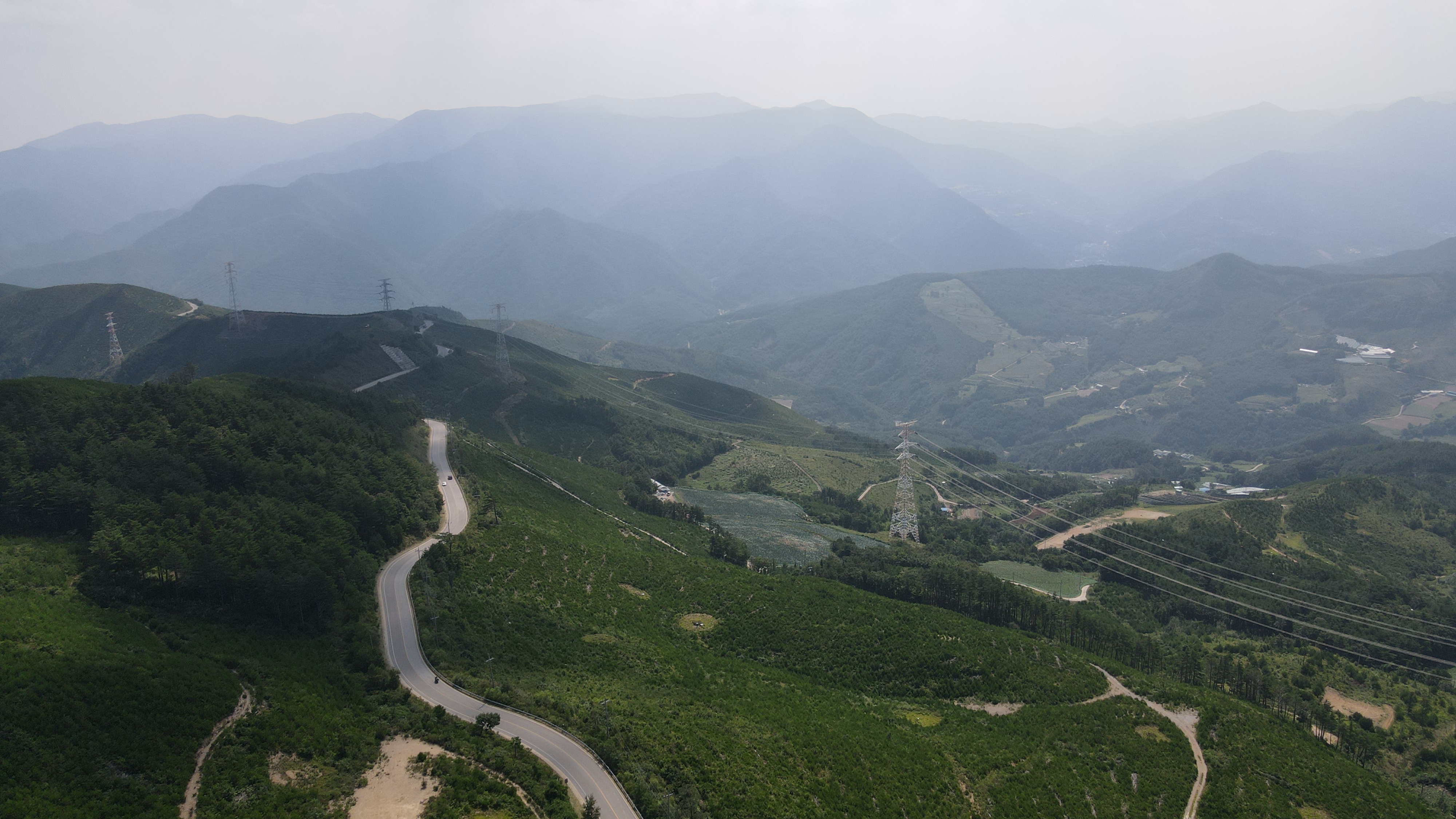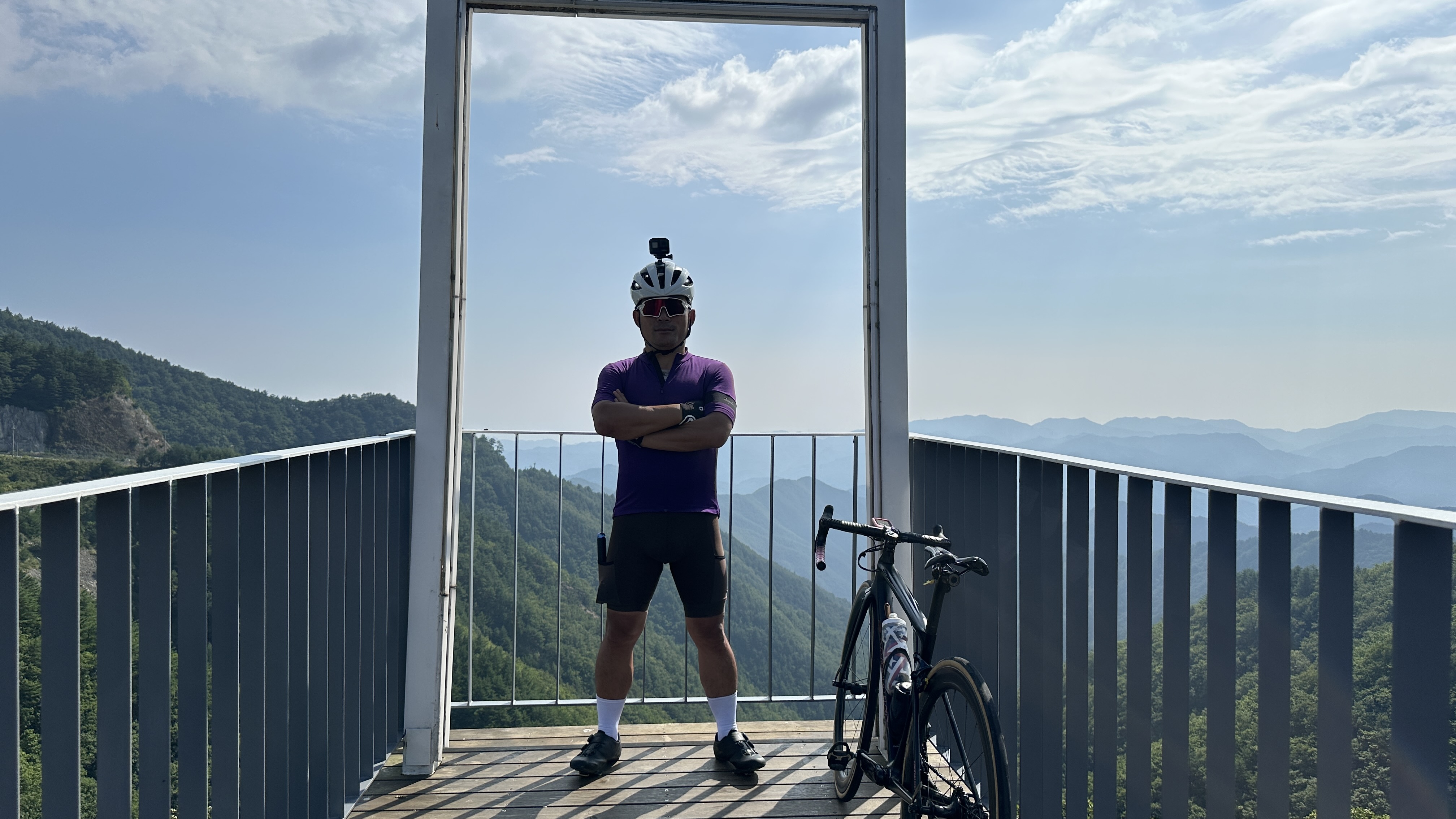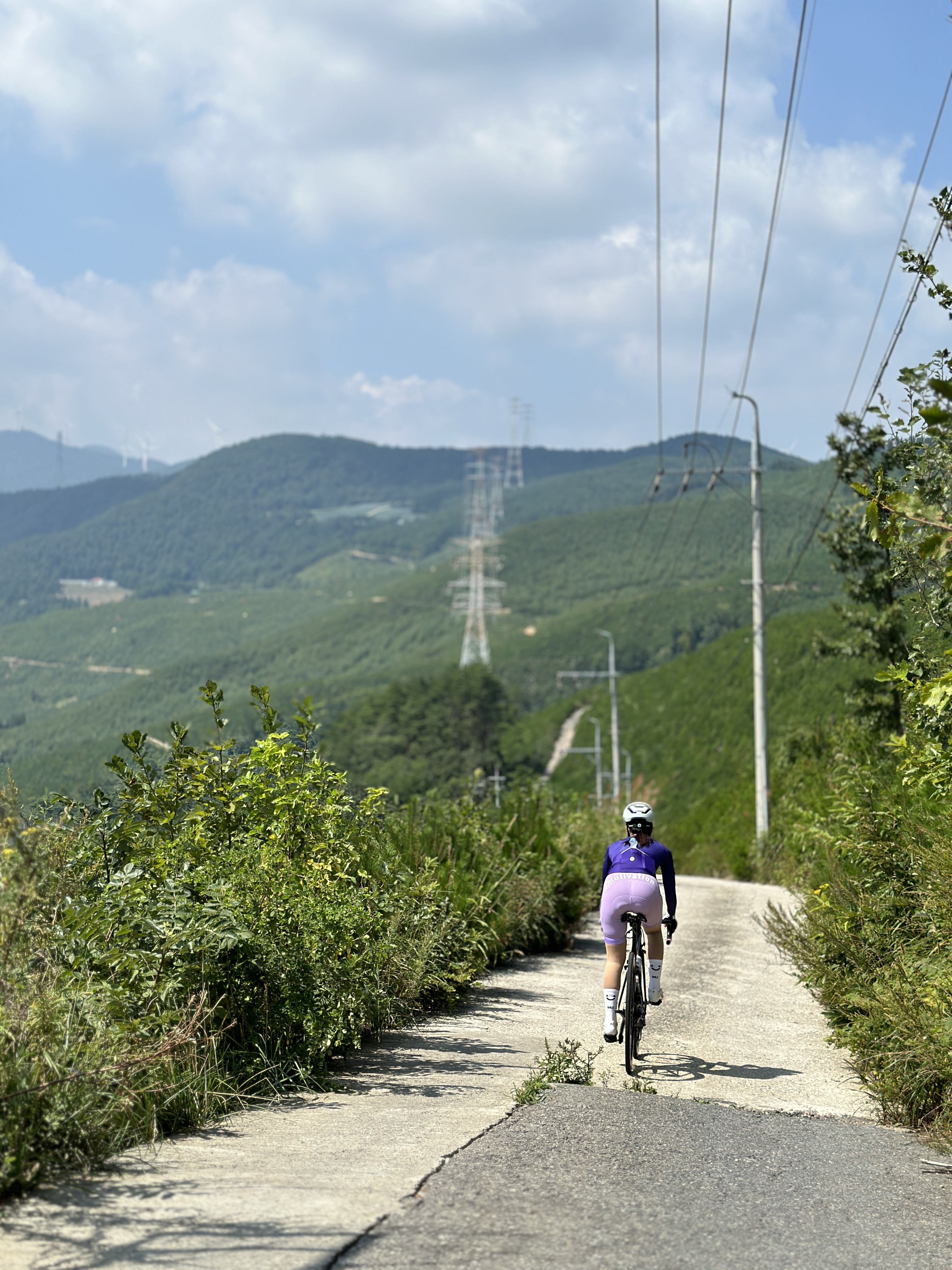 탁트인 풍경이 장관인 건의령에서 사진을 찍고 조심해서 긴 다운힐을 합니다.,