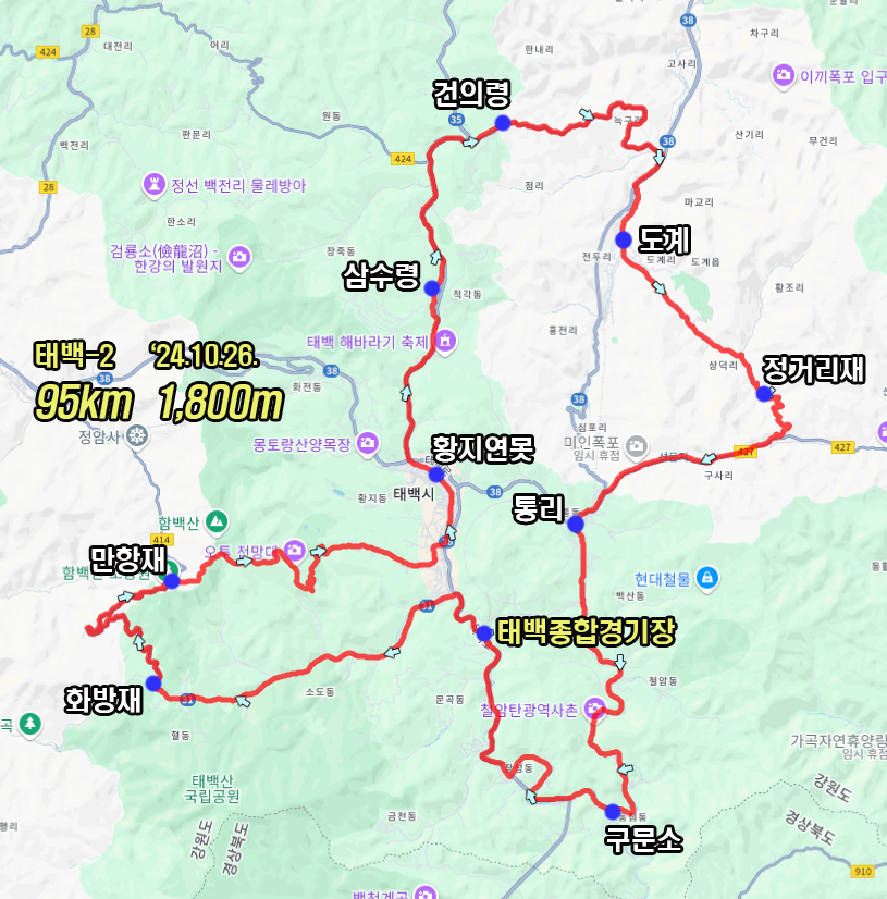 태백 주변으로 풍경 멋진 곳을 알차게 한바퀴 돌아오는 95km 1,800m의 코스를 단풍철에 맞춰서 다녀왔습니다.