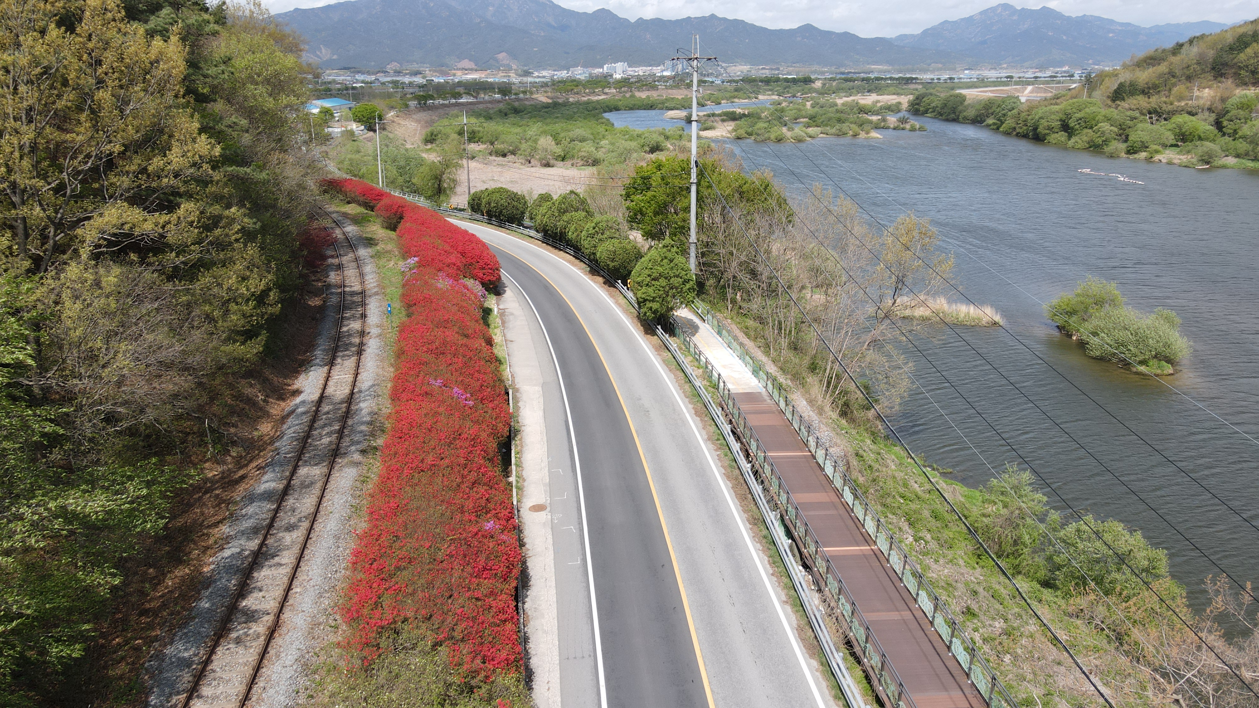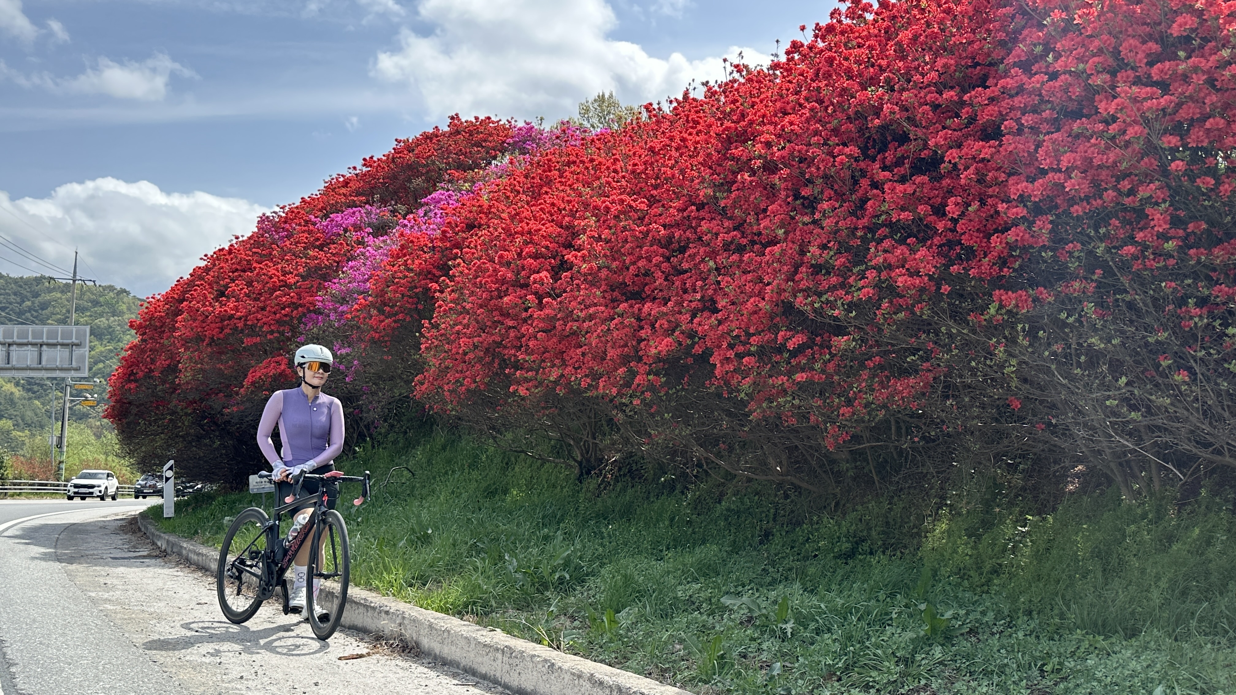 곡성 기차마을을 통과하고 본격적인 철쭉 꽃길 라이딩을 시작합니다. 압록유원지까지 약 10km의 철쭉길은 감탄이 멈추지 않을만큼 화려하고 큰 규모의 철쭉 군락이었습니다.