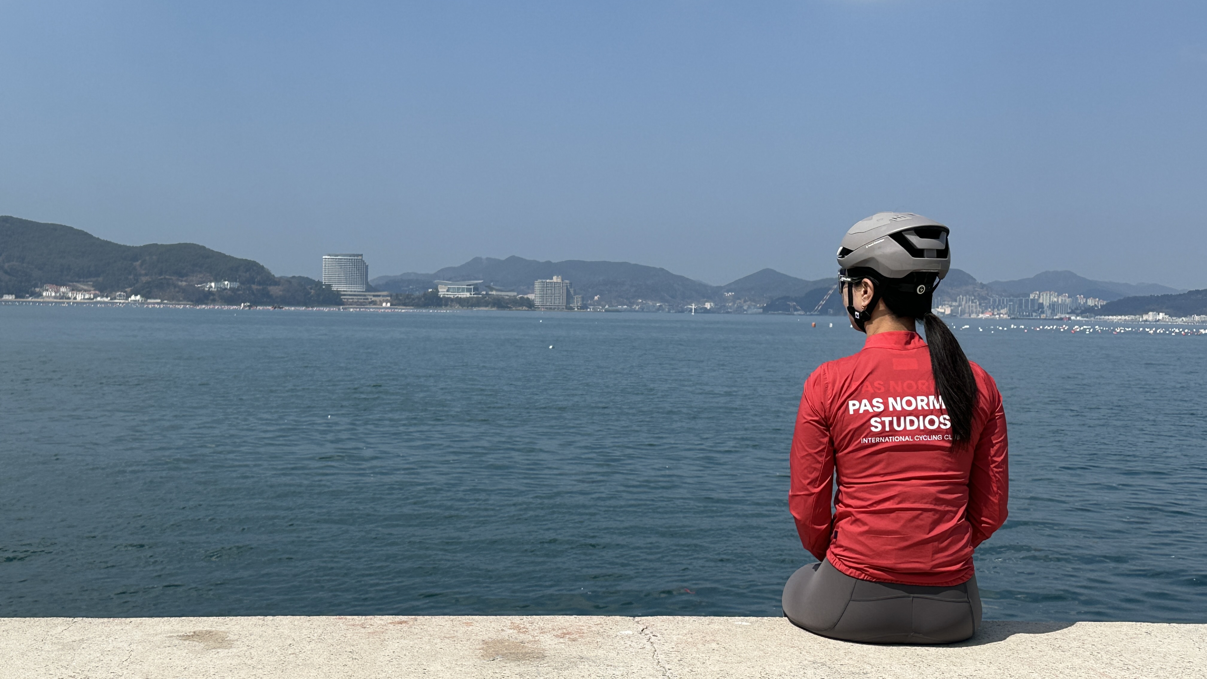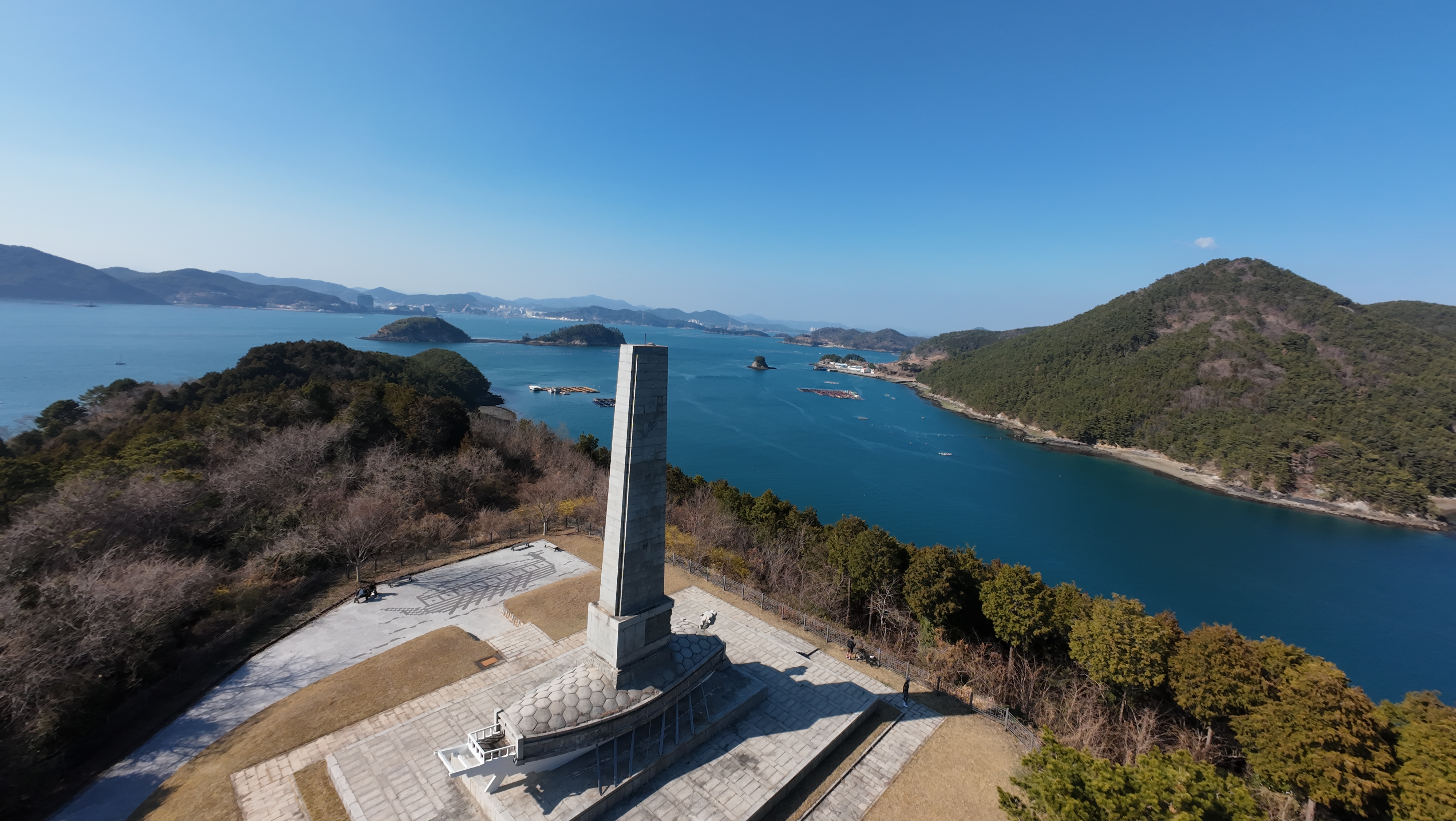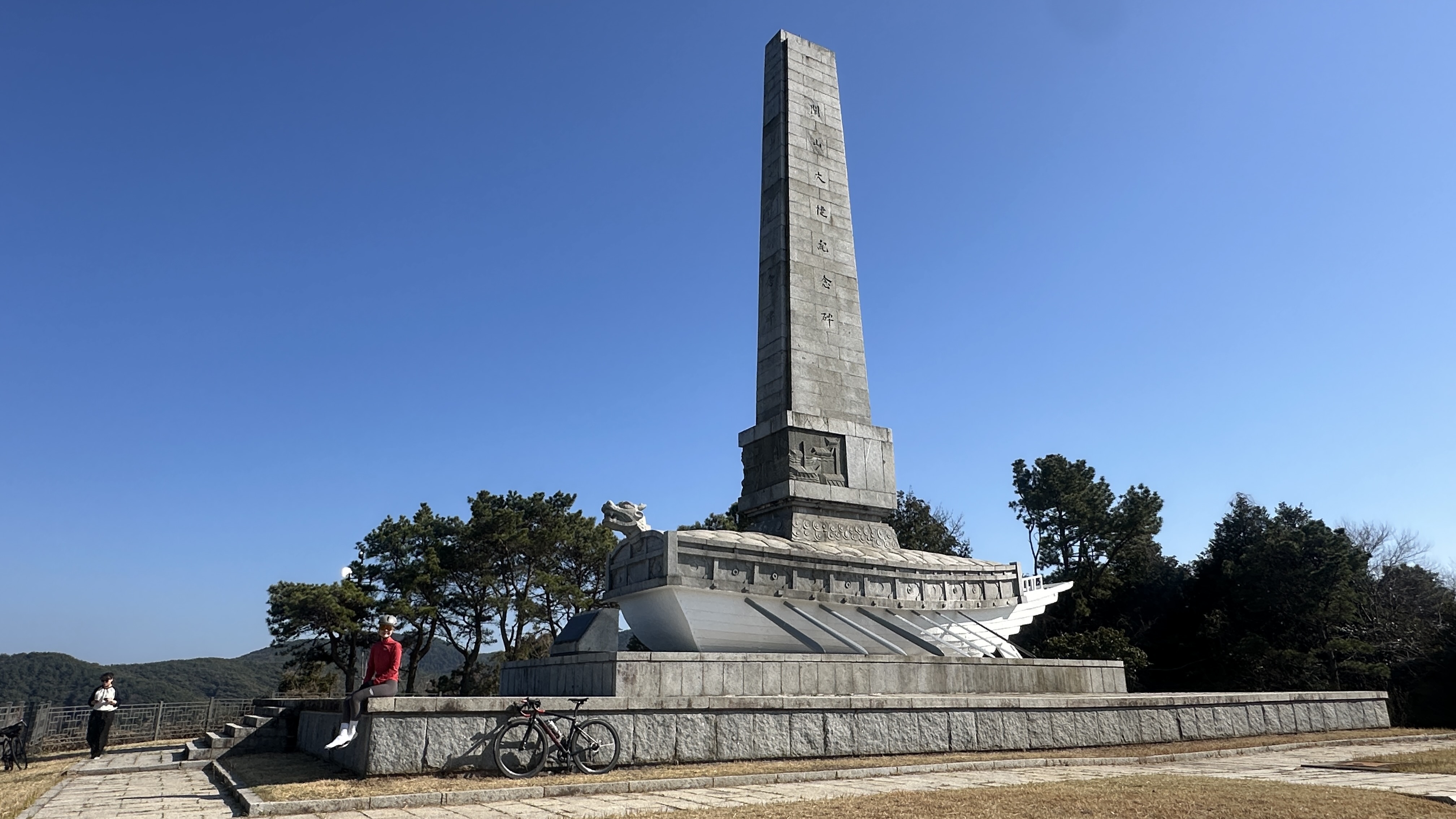 멀리 통영 시내와 제승당항이 내려다 보이는 한산대첩 기념비에서 인증샷을 찍고 제승당항으로 복귀하며 라이딩을 마칩니다.